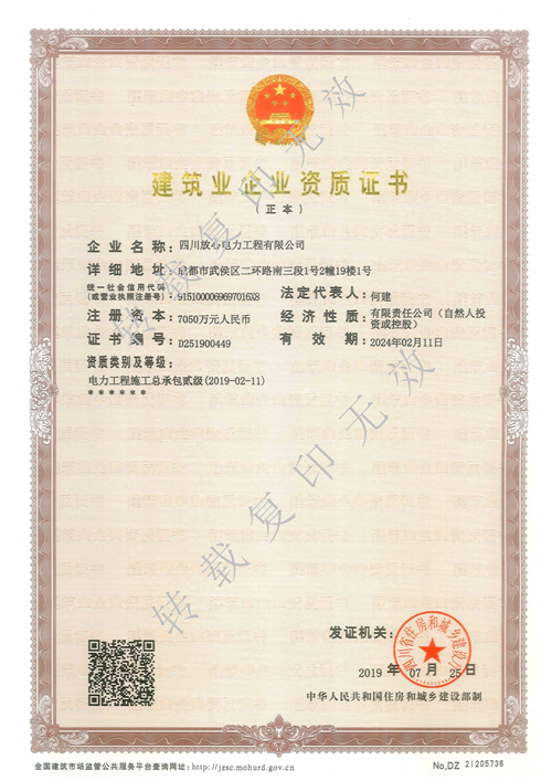 上一篇:承装(修、试)许可证正本