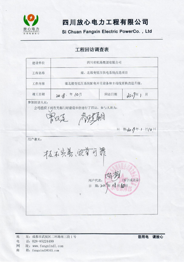 四川省机场集团有限公司南、北箱变低压供电系统改造项目