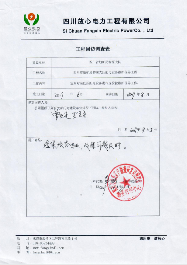 四川省地矿局物探大队配电设备维护保养工程